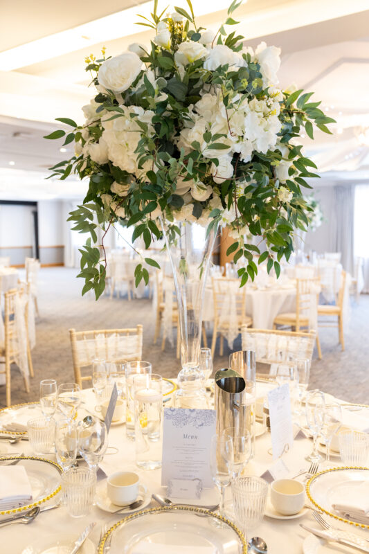 One of the highlights of weddings are the floral arrangements form the wedding ceremony to reception. #weddingflorals #weddingceremony #weddingreception #elegantcenterpieces #greeneryandroses #candles #centrepieces #tallfloralweddingdisplay #vibrantdesigns #trumpetvase #tabledecor #decorluxury #weddingstatment #weddingstatementcenterpieces #flowers #weddingflowers #weddingtransformaion #uniqueflorals #lusharrangments #seasonoflowers #fauxflorals #weddingplanning #weddingdesigner